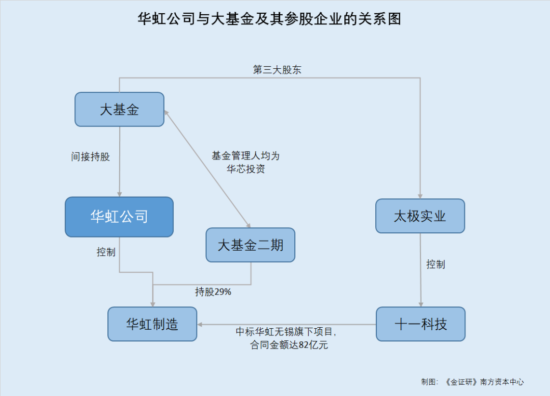 不难发现,2018年1月,华虹公司与大基金签订增资协议以及合营协议,由大基金分别对华虹公司以及其子公司华虹无锡进行增资入股。次月,太极实业旗下子公司十一科技成为华虹公司子公司华虹无锡的项目工程总承包的中标单位。而后,在当年5月,大基金亦入股太极实业,并成为其第三大股东。