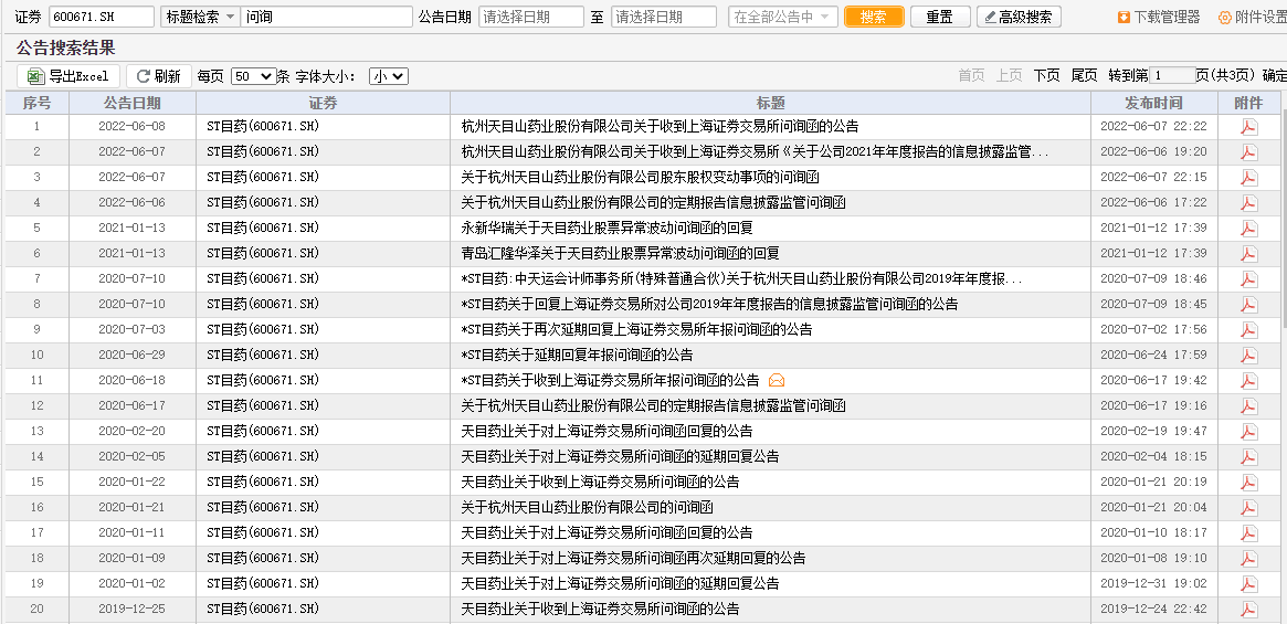实际上,这已经不是ST目药第一次因为程序违规的行为收到问询了。根据钛媒体统计,2020年以来,公司收到监管的问询函接近15封,涉及股权变动、信息披露,年报补充等多个问题。
