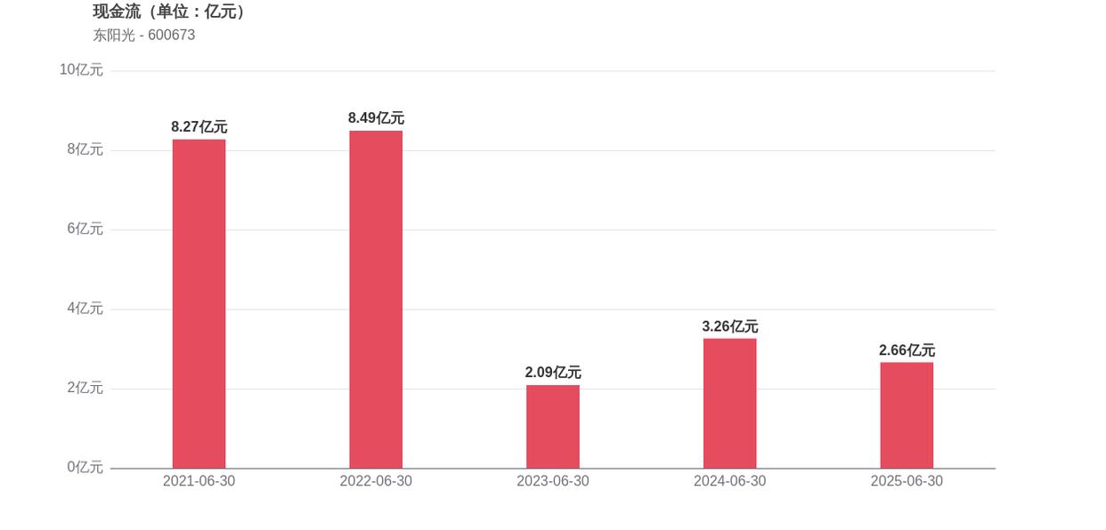 在经营稳健性方面,东阳光面临存货周转效率略有下降的情况,存货周转天数为58.70天,较2024年上半年增长了5.92%,表明库存管理有待优化。经营活动产生的现金流净额为2.66亿元,相比2024年同期的3.26亿元,同比下滑了0.6%。此外,2025年上半年的资产负债率为66.45%,同比增长了3.35个百分点,这意味着公司负债水平有所上升。