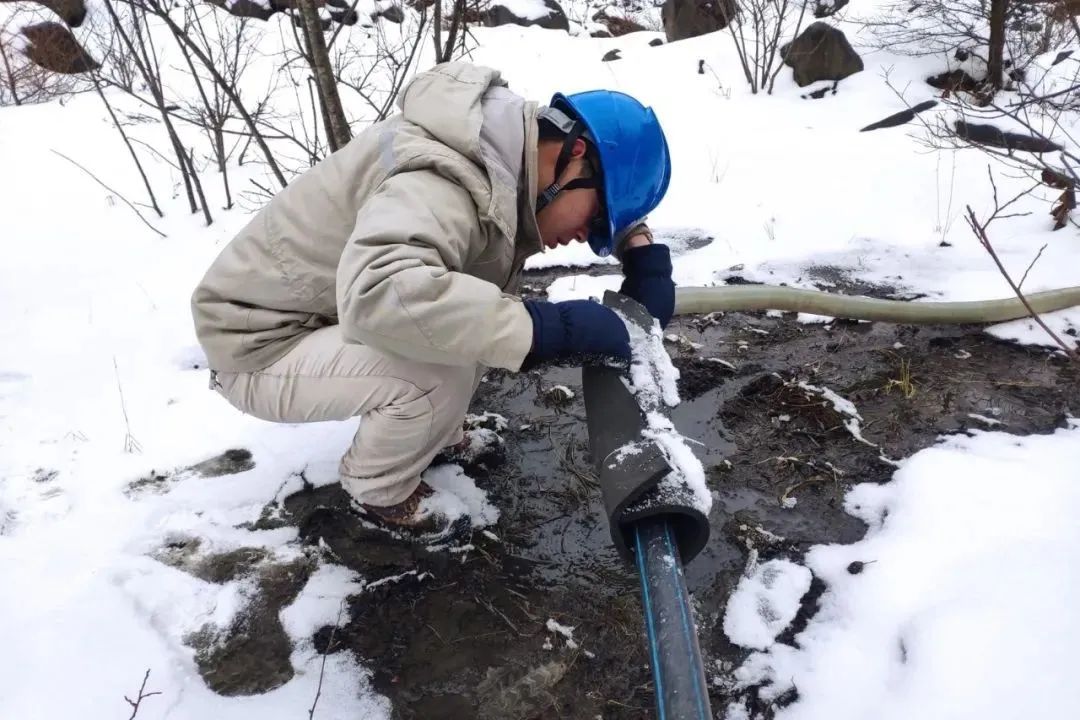 田湾河梯级水电站“咫尺贡嘎”,雨雪纷纷。除夕夜,当千家万户互道一声“除夕阖家欢”的同时,所属仁宗海水电站消防水池水位却悄然突降。为了守卫这万家灯火里的岁岁欢喜,水工班李龙一行人踏雪破冰,穿越密林,经过数小时的艰苦排查,终于找到破损管道,争分夺秒完成了供水管路铺设,第一时间解决了消防供水安全问题。这群顶风冒雪的保供逆行者说:“确实很难,我们的手脚被冰霜冻的僵硬麻木,让抢修变得十分艰难。但想着除夕夜的周遭万户,再大的雪,再冷的夜,我们咬着牙,也得克服万难,勇往直前,消除隐患。”