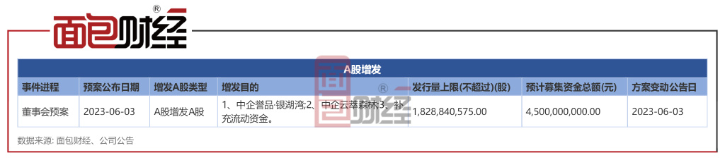 2023年6月3日,中华企业发布定增预案,拟定增发行约18.29亿股,募资总额不超45亿元。