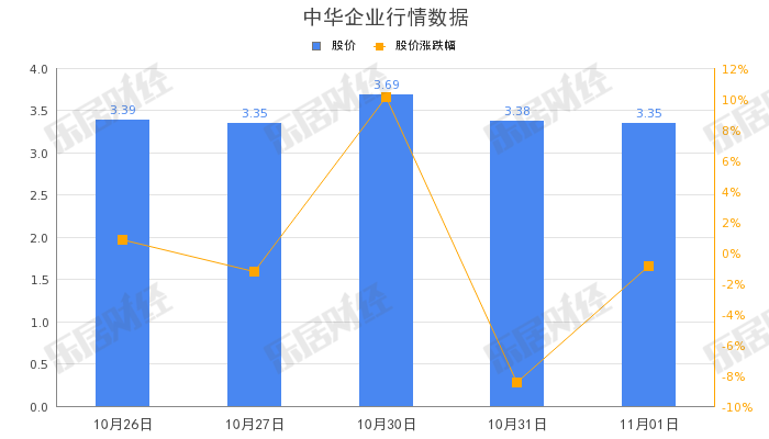 截至11月01日,中华企业(600675.SH)股价收盘报3.38元,跌0.89%,总市值204.22亿元。