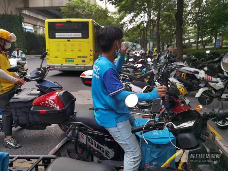7月9日,上海街头送饮料的师傅图片来源:每经记者夏冰摄