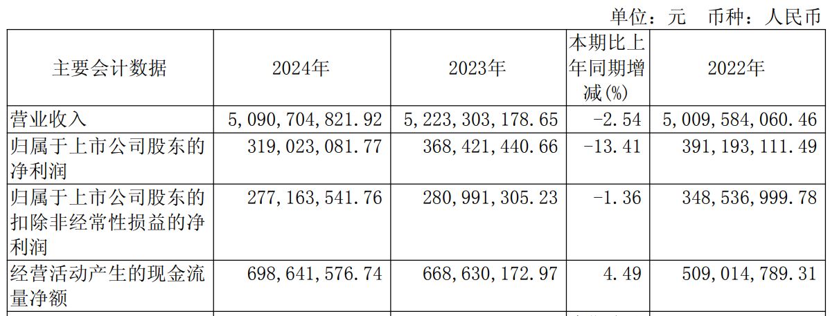 财务数据显示,2022年至2024年,百川能源归母净利润连续下滑。其中,2024年更是营收和净利润双双下滑。