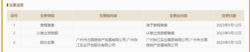 5月18日,工商信息显示,广州珠江发展集团股份有限公司转让广州方实城市更新投资有限公司26%股权,广州珠江实业集团有限公司接盘。