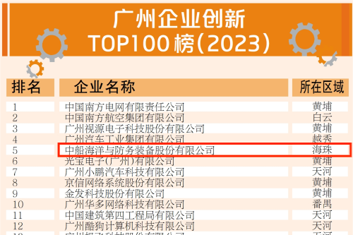12月22日,广州日报数据和数字化研究院(GDI智库)发布“广东创新TOP100榜(2023)”和“广州企业创新TOP100榜(2023)”,中国船舶集团旗下中船防务入选两项榜单。