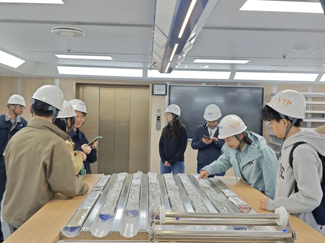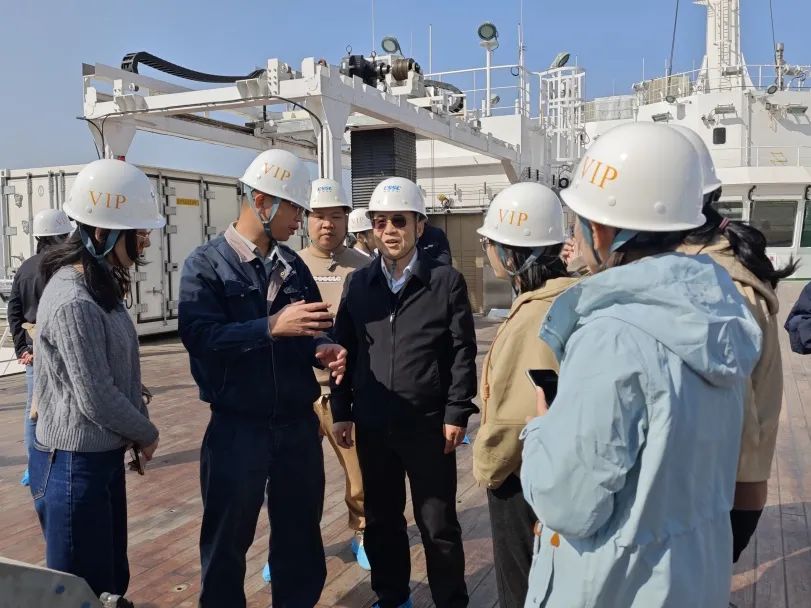 在“梦想”号工程师的带领和讲解下,全体人员登上“梦想”号大洋钻探船,详细参观了内部驾驶区、生活区、科研区和外部作业区,深入了解“梦想”号建造历程、技术创新、科研能力等方面的情况。