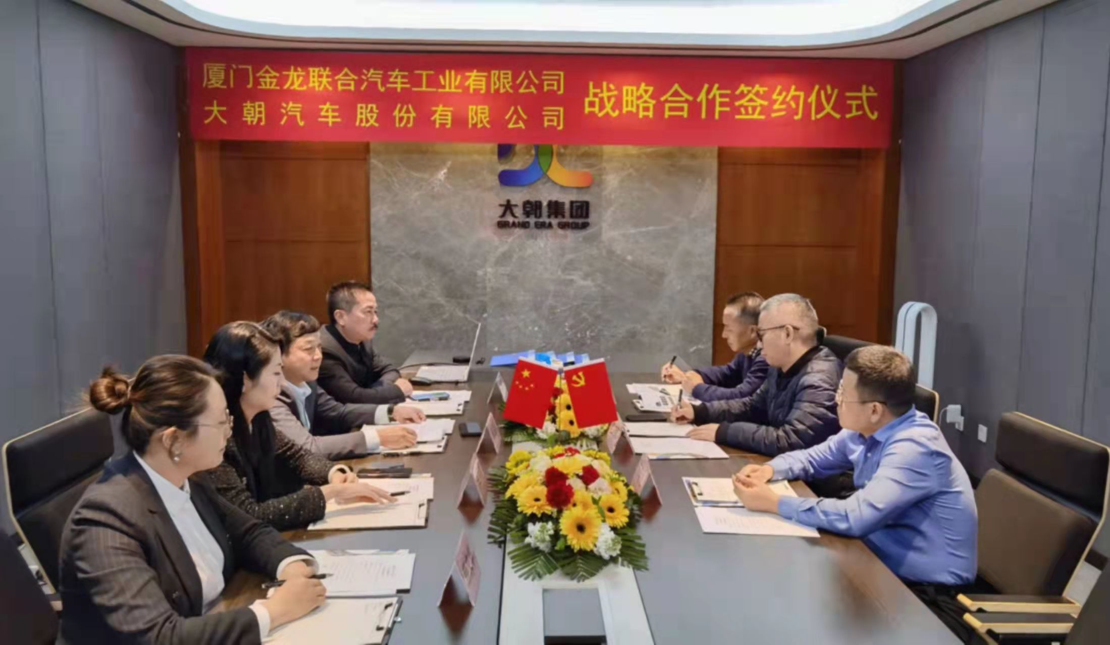 2021年12月22日,厦门金龙联合汽车工业有限公司和大朝汽车股份有限公司战略合作签约仪式在北京大朝集团总部举行。