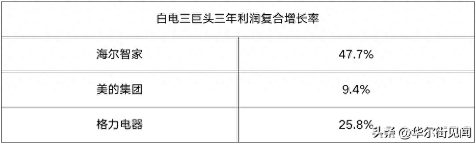 当然,短期的财务数据可能会阶段性受外部环境影响,因此要看一家企业是否值得投资,还是要看中长期的财务表现。就白电三巨头来说,我们把时间倒推3年,通过他们的利润复合增长率,或许会更准确地发现他们的成长性。