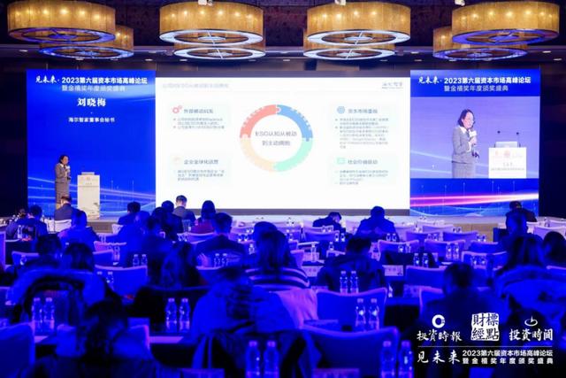 12月20日,由《投资时报》等主办的“见未来?2023第六届资本市场高峰论坛暨金禧奖年度颁奖盛典”在北京举行。会上,2023年度金禧奖公布,海尔智家一次获得“2023美丽中国双碳先锋”、“2023ESG绿色公司之星”、“2023卓越社会责任企业”三项ESG大奖,是行业ESG获奖数量最多的企业。