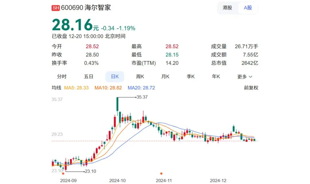 刘步尘表示,海尔智家、格力和美的为“白电三巨头”,在营收上,海尔智家明显落后于美的。