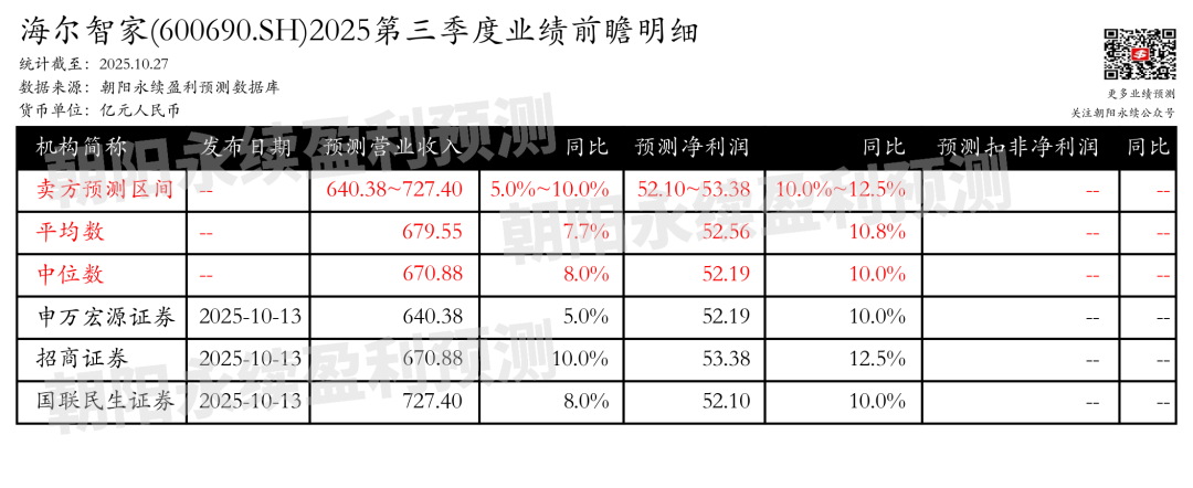 截至2025年10月27日,根据朝阳永续季度业绩前瞻数据: