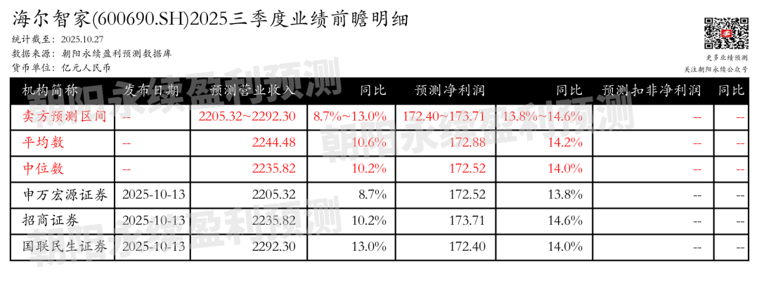 海尔智家(600690.SH)将于2025年10月31日公布2025年三季报。