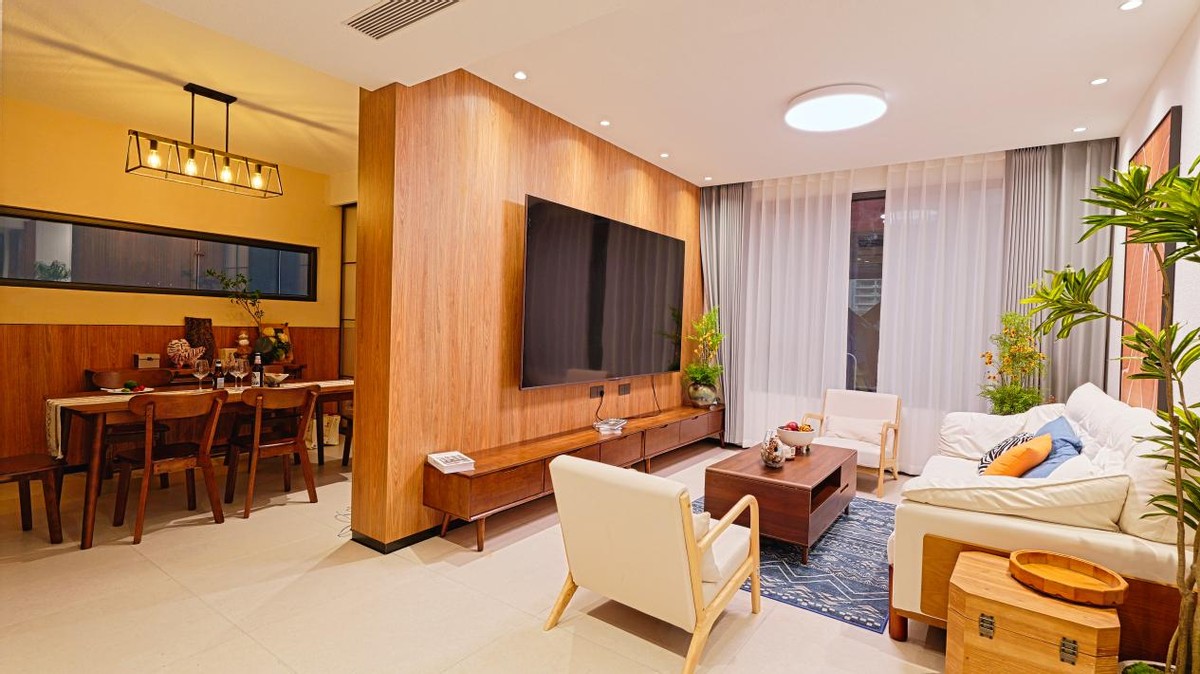“好房子”将家庭空间提升至主动服务的全新维度。海尔智家三翼鸟为全屋设备配备语音智控,用户一句简单的语音指令,即可轻松切换会客、观影等多种场景模式。例如说出“我要看电影”,就能开启影院氛围,灯光渐渐变暗,空调调至合适的温度。如果有朋友前来聚会,说一句“来客人了”就能改变客厅场景氛围,电视屏幕瞬间切换为动态艺术画廊,40分贝自动播放轻快的爵士乐,灯光系统渐暗至30%亮度。此外,整个空间还搭载针对晾房/睡眠/除湿防潮定制专属解决方案。