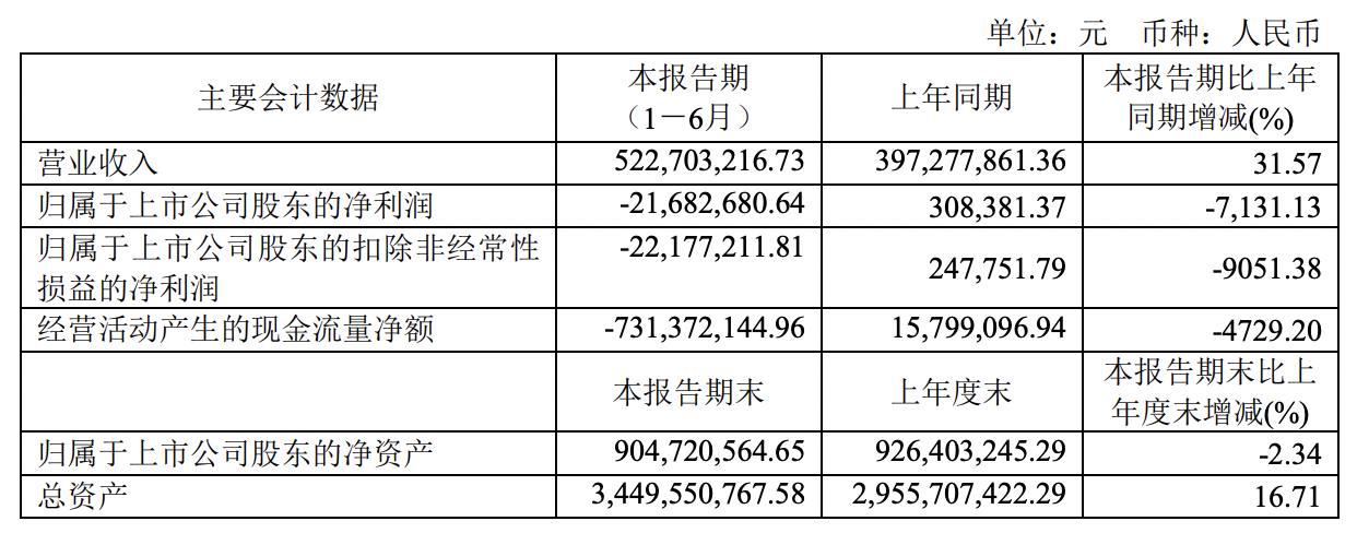 报告显示,2023年上半年,亚通股份实现营业收入为5.23亿元,同比下降31.57%;归属于上市公司股东的净利润为-2168.27万元,同比由盈转亏。