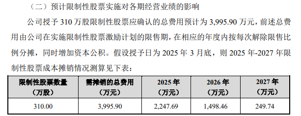 从激励草案的业绩考核要求来看,实现难度并不大:第一个解除限售期的要求为,2025年度扣非净利润同比2024年增长不低于10%;第二个解除限售期的要求为,2026年度扣非净利润同比2025年增长不低于10%。如果没有达到业绩考核要求,那么激励对象对应考核当年计划解除限售的限制性股票均不得解除限售,而是由公司回购注销,回购价格为授予价格。