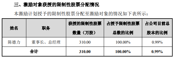 对于股权激励对象只有一个人的情况,每经资本眼记者以投资者身份致电大商股份证券部,相关人士表示:“这是公司第一次开展股权激励计划,根据陈总的工作能力等情况,考虑这个办法,并通过公司薪酬委员会和董事会审议通过,后续可能会出台更多的计划,目前就是开创了一个先河。”