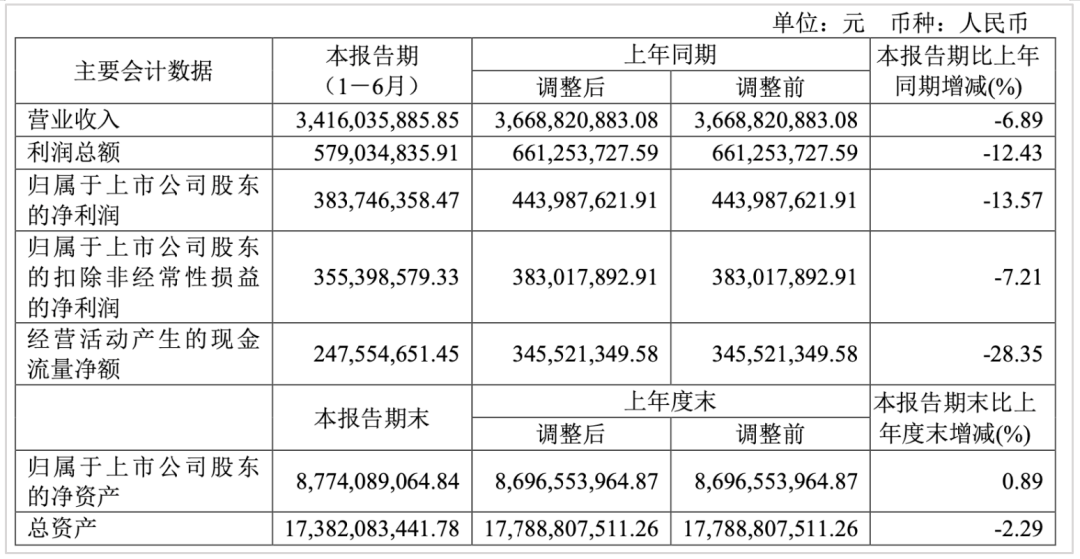数据显示,大商股份今年上半年实现营业收入34.16 亿元,同比下降 6.89%;实现净利润 4.23 亿元,同比下降12.24%;归母扣非净利润 3.55 亿元,同比下降7.21%。