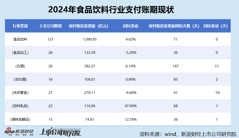 食品饮料行业平均支付账期71天