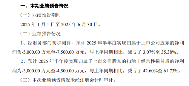7月14日晚间,*ST岩石发布业绩预告,预计2025年半年度实现归属于上市公司股东的净利润为亏损5000万元~7500万元,与上年同期相比,减亏了3.07%~35.38%。尽管净利润实现减亏,但*ST岩石退市风险却在悄然变大。