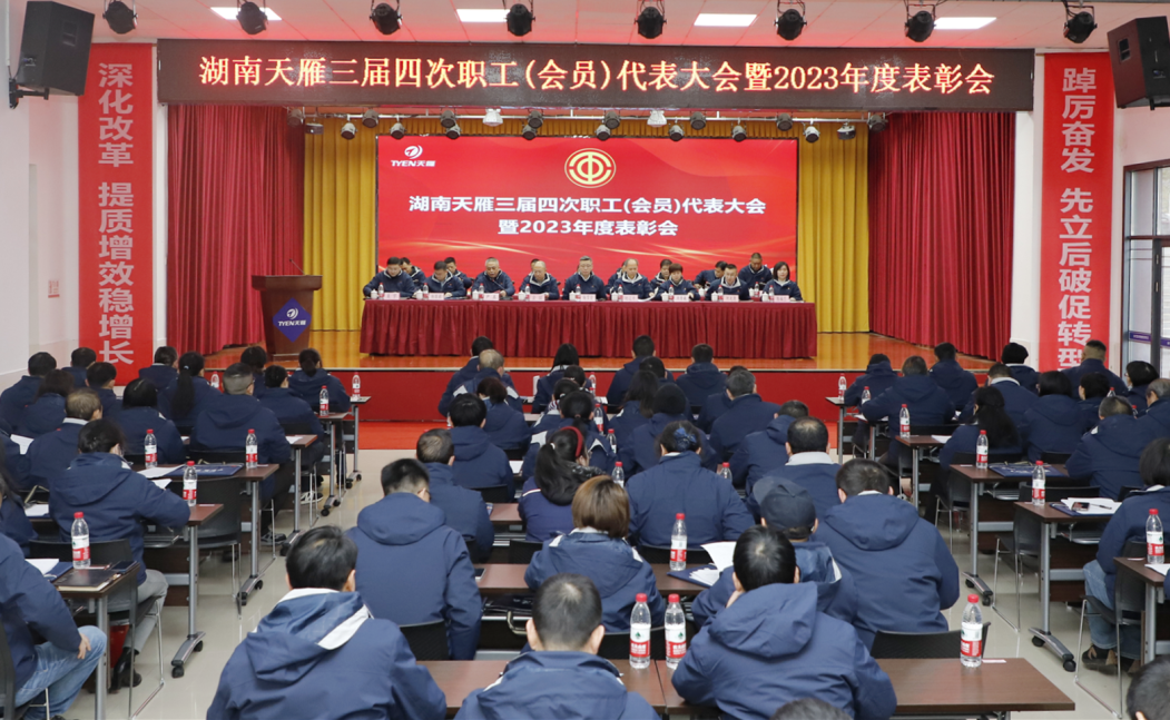 2月2日上午8点40,在雄壮的国歌声中,湖南天雁召开三届四次职工(会员)代表大会暨2023年度表彰会。会议以习近平新时代中国特色社会主义思想为指导,深入贯彻兵器装备集团和中国长安2024年工作会议精神,总结2023年工作亮点,部署2024年目标任务,明确“262”工作思路,为全面开启新一年征程指明方向、汇聚共识。