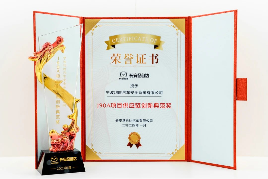 近期,长安马自达年度合作伙伴大会在南京举行,均胜电子在会上荣膺“J90A项目供应链创新典范供应商奖”。目前,均胜电子已为MAZDA3 昂克赛拉、CX-30、CX-50行也等多款长安马自达主力畅销车型供应核心安全产品。