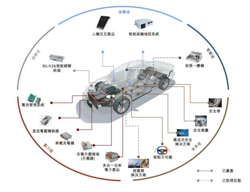 均胜电子产品涉及座舱域、智驾域、车身域、网联域以及动力域,具体包括智能座舱、智能驾驶、智能网联、功率电子及车身安全等主要汽车领域产品,并具备多域融合、协同,为车企提供全面解决方案。
