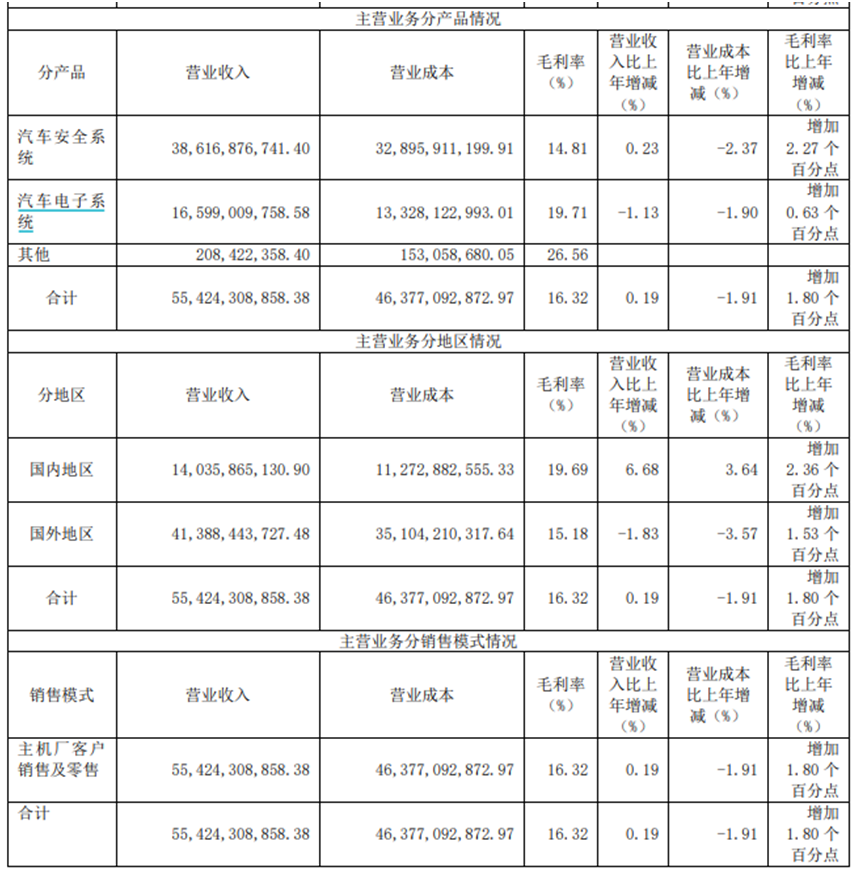 2024年,均胜电子的汽车安全系统收入386.17亿元,同比仅增长0.23%,汽车电子系统收入165.99亿元,同比下降1.13%,其他业务收入2.08亿元。