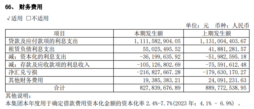 2024年贷款及应付款项的利息支出为11.12亿元,占利润总额的55.49%,巨大的财务费用支出影响了利润和现金流。2024年,均胜电子用于确定借款费用资本化金额的资本化率为2.4%~7.7%,而2023年为4.1%~6.9%。
