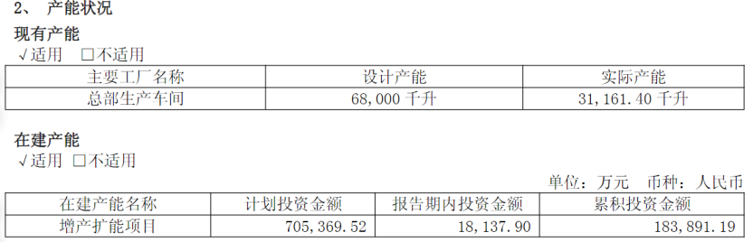 此外,在业绩大幅下滑之时,舍得酒业还在投入70亿元的大额资金推进扩产计划。但据2025年年报显示,公司产能利用率仅45.83%。