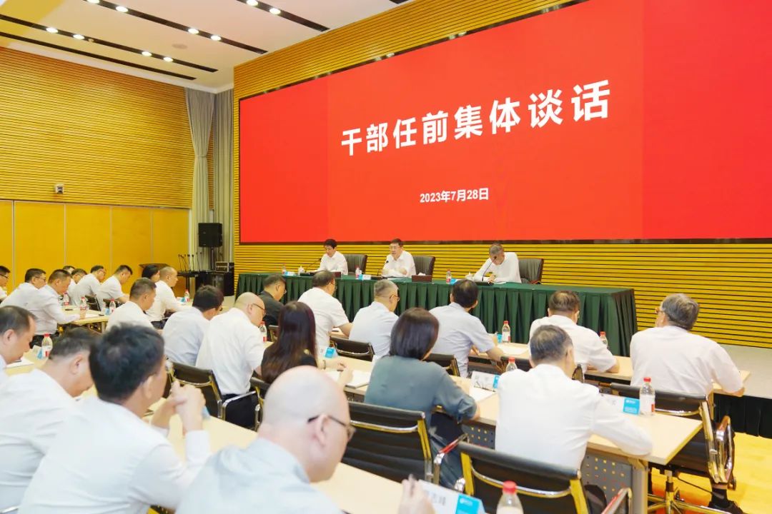 7月28日上午,物产中大集团党委召开成员公司换届干部任前集体谈话会。集团党委书记、董事长陈新作任前集体谈话,集团党委副书记、董事、总裁宋宏炯,党委副书记、董事、工会主席许强出席会议,会议由许强主持。