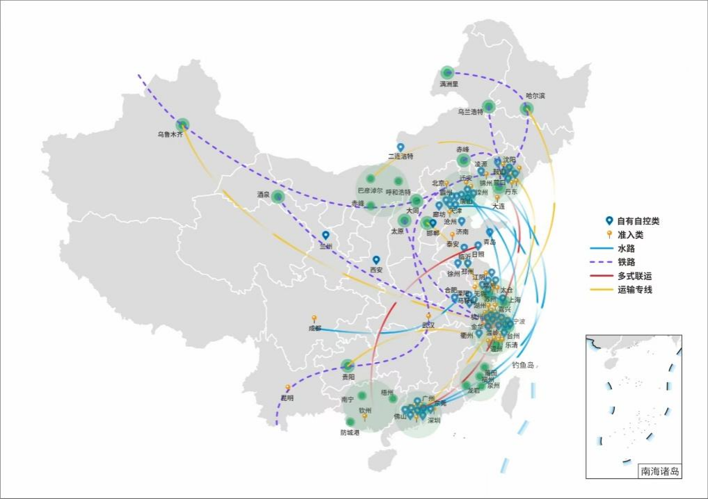 经过二十余年的耕耘,物产中大物流在全国布局网络结点数 210个,其中大宗自营基地88个,带码头仓18个、泊位50个,铁路专用线11条。年综合物流服务量达8597万吨,同比增长24%,在沿海形成多个年500万吨级以上的优势服务区域,年加工能力1288万吨,年加工量增长61%,网络货运平台拥有司机数5万余名、车辆3万余辆。