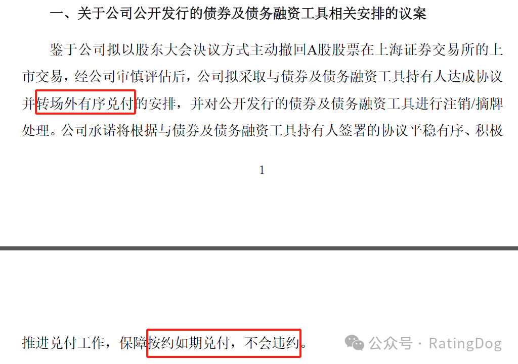 和股票退市,立即给于股票持有人现金补偿相比,债券由于存续量很大,难以马上立即全额兑付,因此采取转场外兑付的方式是符合实际的做法。