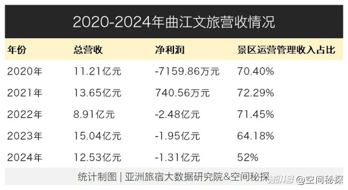 具体来看,2024年财报显示,对公司净利润影响超过10%的子公司有4家,只有1家西安曲江城墙旅游发展有限公司实现了盈利,西安曲江文旅景区管理有限公司净利润亏损4,874.66万元、西安曲江文旅酒店餐饮管理有限公司亏损了1,229.21 万元,以及西安安合泰商业运营管理有限责任公司亏损1,358.53 万元。