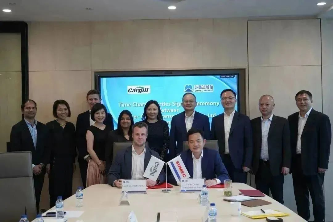在新期间,杨永清一行拜访了嘉吉和嘉能可,并分别见证了苏美达海运公司与两家客户的项目签约。嘉吉亚太区董事总经理Lim Ying Ying;嘉能可巴拿马船型全球负责人Mehdi.Ettahiri,超灵便船型全球负责人Peter.Ensink接待了杨永清一行。嘉吉和嘉能可是苏美达海运公司的战略客户,此前分别已有20余次和10余次期租租约合作。