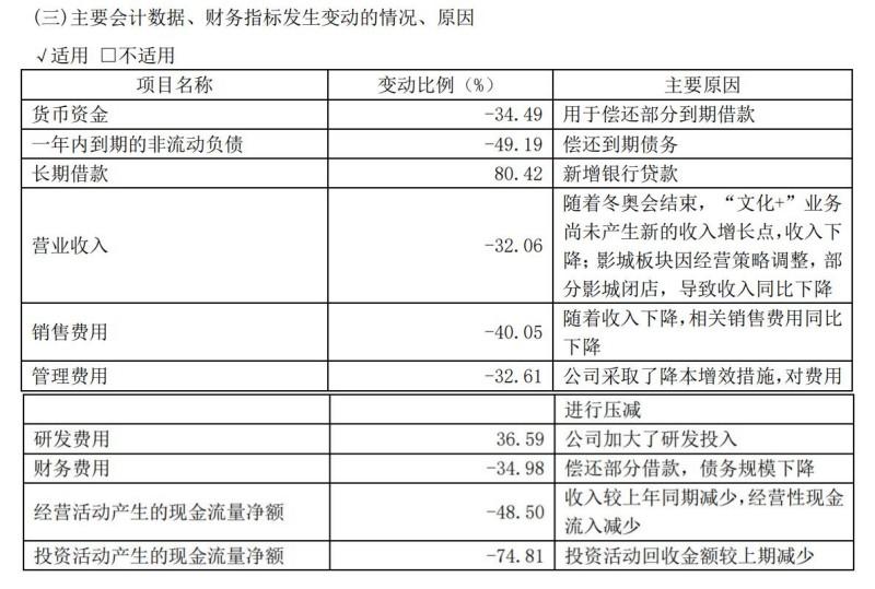 其中,2022年度,部分影城关停导致影城相关收入大幅下降,因此导致文投控股营业收入仅为8亿元;同时,也是因为部分影城的关停,导致固定资产减值损失0.22亿元,长期待摊费用进行加速摊销1.02亿元;结合公司与市场环境的变化,文投控股产生了3.56亿元商誉减值损失和1.12亿的预付账款减值损失;部分下游客户付款意愿和付款能力均受到重大冲击,产生了2.92亿元应收账款坏账损失。这些因素影响叠加,文投控股2022年度亏损了12.73亿元。