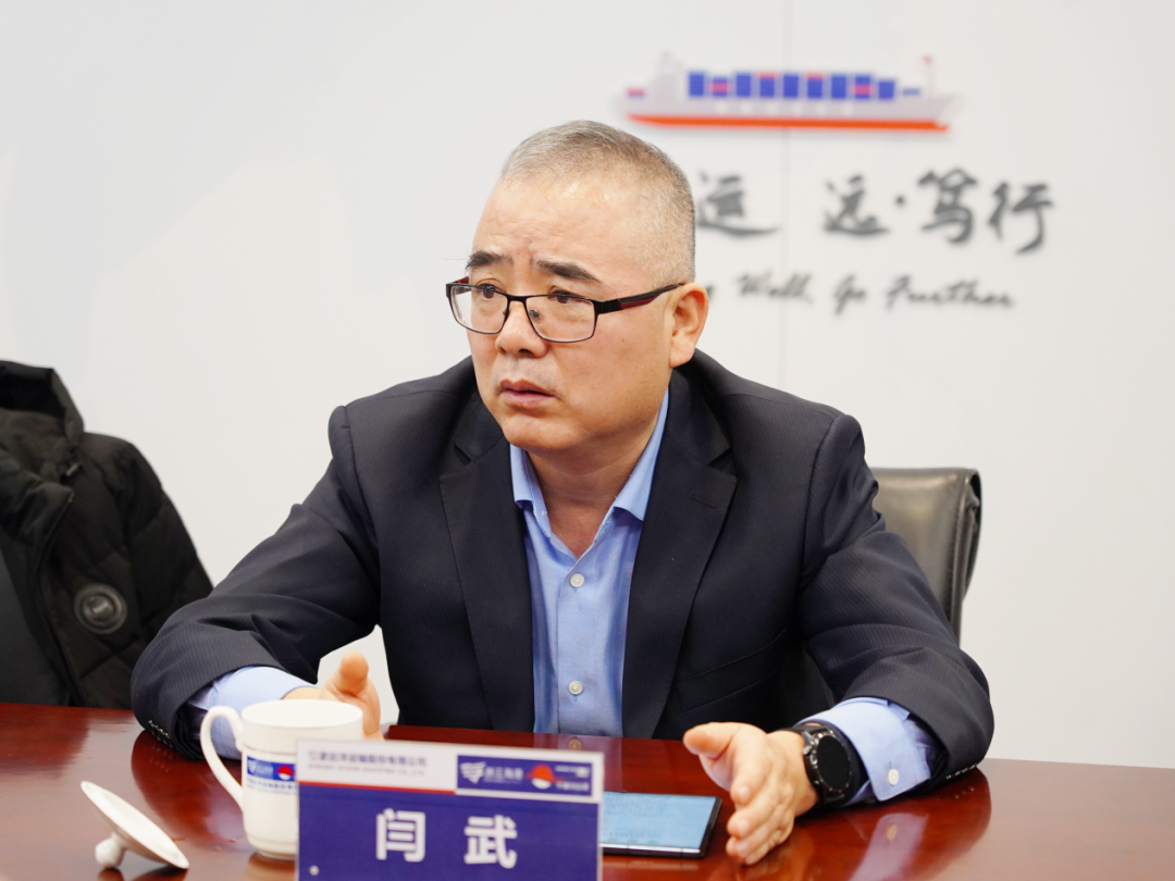陈晓峰对闫武一行的到来表示热烈欢迎,并详细介绍了公司加快打造“亚洲领先的区域物流服务商”所取得的最新成果以及当下所面临的挑战。陈晓峰指出,公司自开展内贸集装箱运输业务以来,始终与天津港保持着良好的合作关系,持续加大“天津-宁波-虎门”航线运力投入,业务规模稳步提升。希望双方以此次座谈交流为契机,进一步加强合作,把握发展窗口期,通过稳中求进、合作创新等模式打通新路径、实现新突破,为双方高质量发展贡献坚实力量。