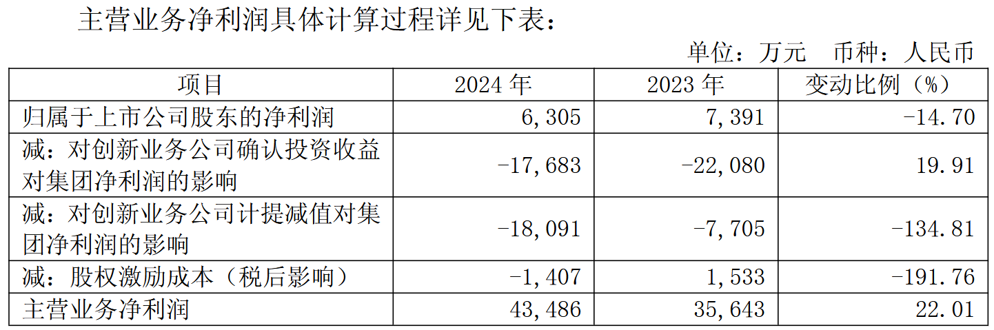 考虑到上述因素为公司净利润带来的0.89亿元负向影响,尽管2024年公司主营业务净利润同比增加0.78亿元,最终体现在归母净利润层面,仍同比减少0.11亿元,使得公司归母净利润与主营业务净利润变动趋势不一致。