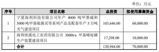 5月31日,湖南海利发布2022年度非公开发行A股股票预案。本次非公开发行募集资金总额预计不超过70,000.00万元,扣除发行费用后将用于宁夏海利科技有限公司年产4000吨甲萘威和5000吨甲基硫菌灵等系列产品及配套年产3万吨光气建设项目、海利贵溪化工农药有限公司3000t/a甲基嘧啶磷生产装置建设项目。