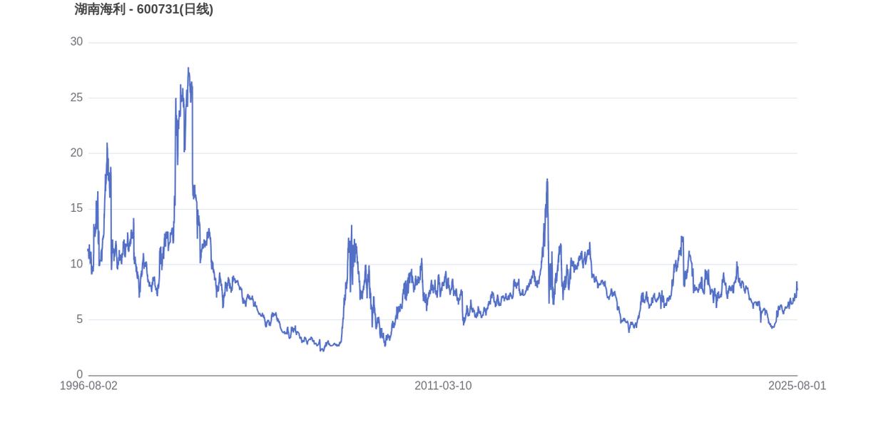 湖南海利自1996年08月02日上市至今,已迎来29周年。从上市首日收盘价为11.3元、市值5.76亿元,到如今市值达到43.81亿元。
