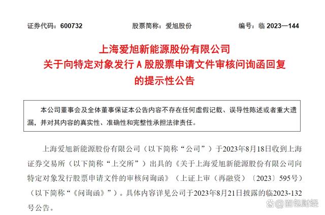 9月23日公告显示,爱旭股份对此前交易所下发的定增问询函进行了回复。