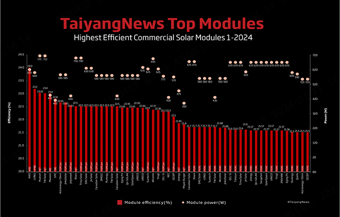 另一方面,爱旭股份持续深耕于拥有差异化优势的BC技术。自2022年爱旭股份正式推出首款其自主研发的ABC组件,公司便不断在提升ABC组件的光电转换效率上发力。值得一提的是,尽管行业内玩家不断刷新其产品转换效率,爱旭股份N型ABC产品在TaiyangNews全球组件量产效率排行榜上已连续11个月位居榜首,在组件端持续向市场提供高效率、高功率、高质量、高可靠性的组件产品,市场竞争优势明显。