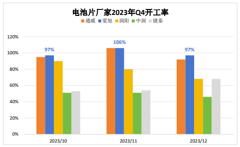 产能的阶段性出清,可能比市场预想的要更快。PV InfoLink的信息显示,四季度电池生产企业无法盈利的过程中,许多企业考虑到后续 PERC 电池日渐式微,为了避免亏损扩大逐步关停自身老旧产能,甚至也出现个别企业营运面临问题而中止生产,退出光伏制造板块。截至 2023 年 12 月末,PERC 电池产能中已经确定关闭/停止生产的项目达到 50.6 GW,占比约 10%左右。另外近期有产业专家在接受调研时表示:“目前行业在库PERC产能有450GW+,其中关停/改造/改造评估中的约200GW,确定关停的有 170-180GW”,专家进一步指出:“没有关停的 PERC 产能主要是一体化企业和体量较大的专业化电池厂,这部分产能一是有订单保证,二是较为优质,可进行后续改造”。