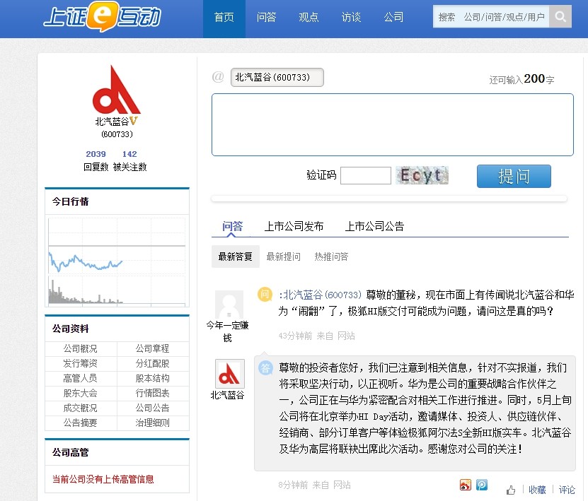 来源:上证e互动平台截图