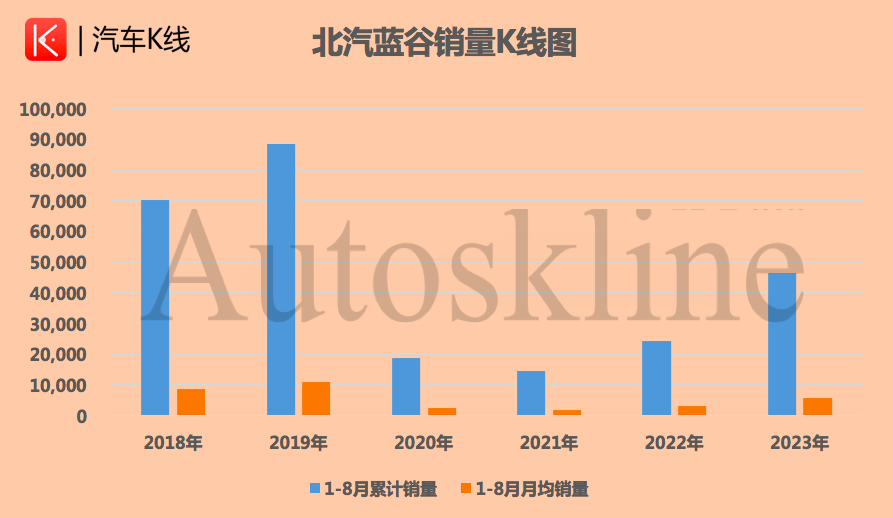 根据北汽蓝谷披露的销量数据显示,今年1-8月,其累计销量为4.64万辆,同比增长90.15%,几乎追上北汽蓝谷2020和2021两年累计销量之和、2022年的全年销量。其中,8月销量达7,878辆,同比大涨109.19%。