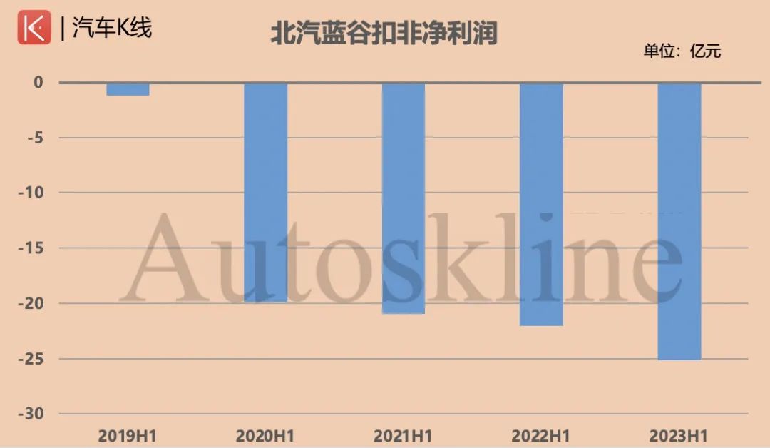 不过,扣除非经常性损益后,北汽蓝谷今年上半年的利润表现则显得更加“糟糕”。今年上半年,北汽蓝谷归属于上市公司股东的扣除非经常性损益的净利润(扣非净利润),不仅在北汽新能源借壳上市以来连续6年同期出现亏损,还创下25.12亿元的同期历史亏损新高;而放在中国汽车上市公司中更是排名垫底(不含港股上市公司)。