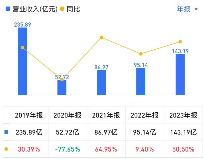 2023财报显示,北汽蓝谷营业收入达143.19亿元,同比增长50.5%,实现了四年连涨。
