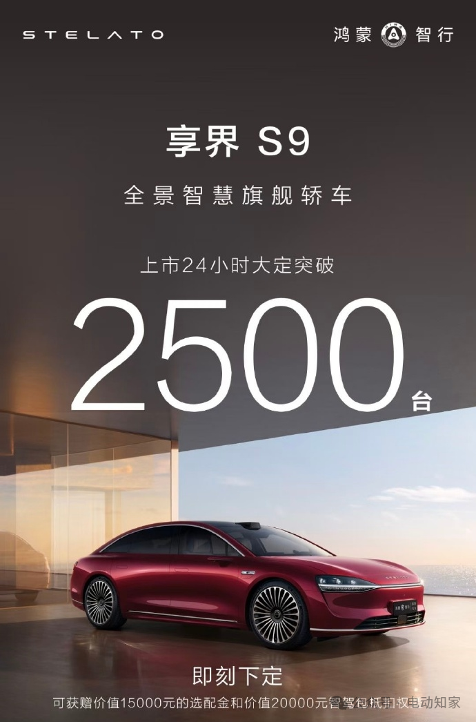 消息面上,8月7日,享界 S9 上市后第一份大定成绩出炉,24小时2500台,低于预期。