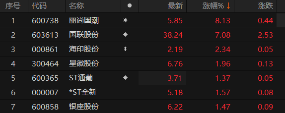 商贸零售板块早盘走高 丽尚国潮涨超8%