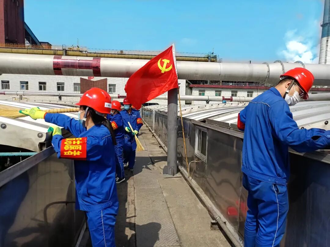 党建引领绿色航向,擦亮可持续发展环保底色。公辅厂党委全力推进“环措”项目落地,严格工艺管控,加强对总排口在线监测平台的精细化监盘管理,号召党员带头精细操作、优化工艺,刚性确保废气、废水100%稳定达标排放;将环保责任压实到每名党员肩头,党员突击队冲锋在环境治理一线,利用节假日帮扶生产一线进行卫生清扫、固废治理,为环保工作打牢基础。